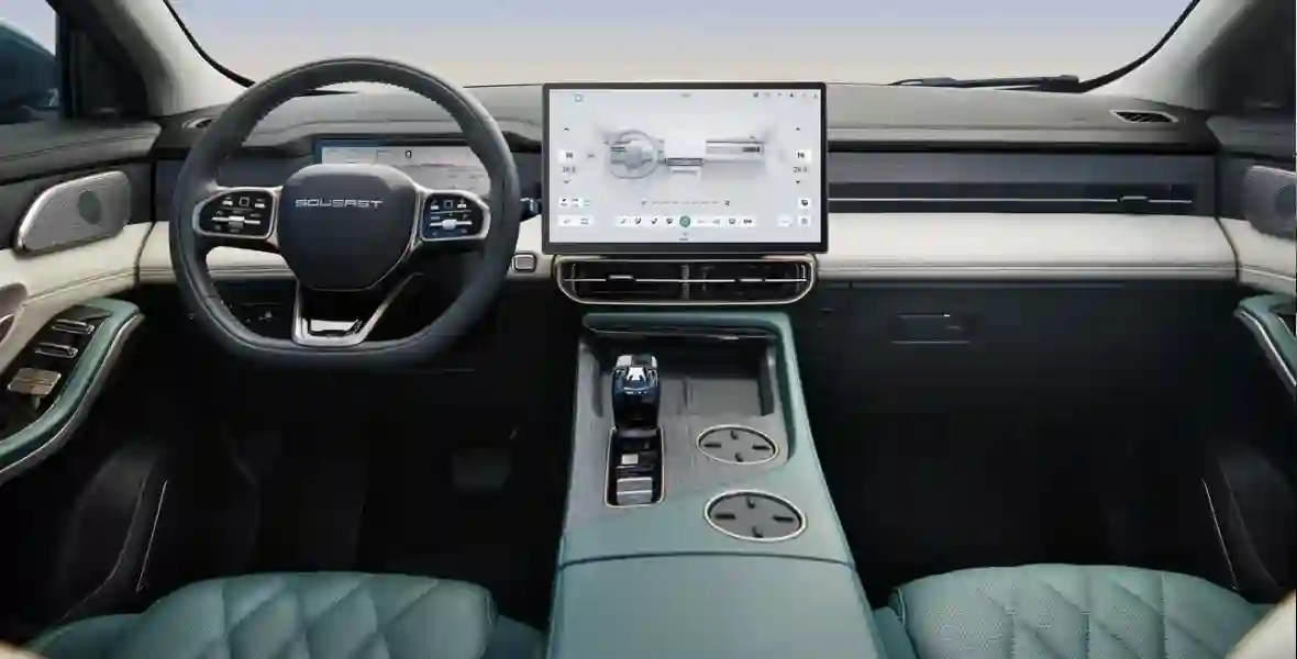 Изысканность внутреннего мира SOUEAST ЭC 09 подчеркивает селектор трансмиссии, который выполнен в виде кристалла со 176 полированными гранями. Информация о поездке выводится на цифровую приборную панель с экраном диагональю 10.25 дюймов. В центральной части приборной панели находится экран мультимедийной системы Высокое разрешение с диагональю 15.6 дюймов, в котором расположены дополнительные органы управления и меню информационно-развлекательной системы.